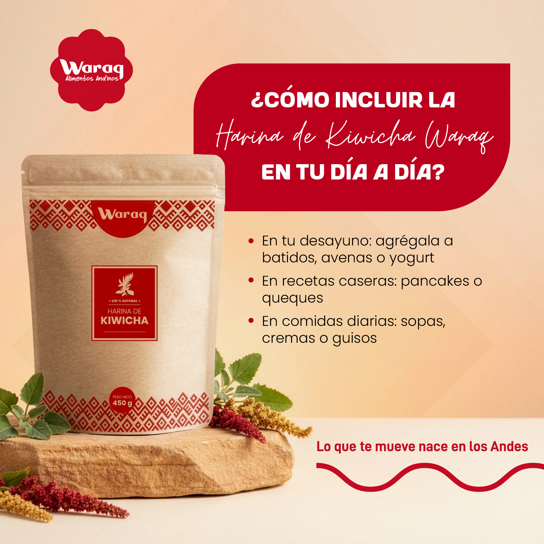 La harina de Kiwicha posee todos los nutrientes para mantenerse fuerte y saludable. Posee un asombroso balance de proteínas, minerales, vitaminas y fibra.
